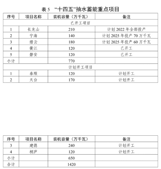 有序發(fā)展抽水蓄能電站。積極推進(jìn)長龍山、寧海、縉云、衢江、磐安等抽水蓄能開工項(xiàng)目的建設(shè),穩(wěn)妥開展泰順、天臺(tái)等抽水蓄能電站項(xiàng)目前期工作,適時(shí)啟動(dòng)建德、桐廬站點(diǎn)的前期工作。結(jié)合現(xiàn)有站點(diǎn),合理規(guī)劃布局,積極推動(dòng)新一輪抽水蓄能電站選點(diǎn)工作。加強(qiáng)抽水蓄能電站建設(shè)管理體制、電價(jià)機(jī)制等研究。"十四五"期間,全省抽水蓄能電站力爭新增裝機(jī)容量 340 萬千瓦,累計(jì)裝機(jī)容量達(dá)到798 萬千瓦。