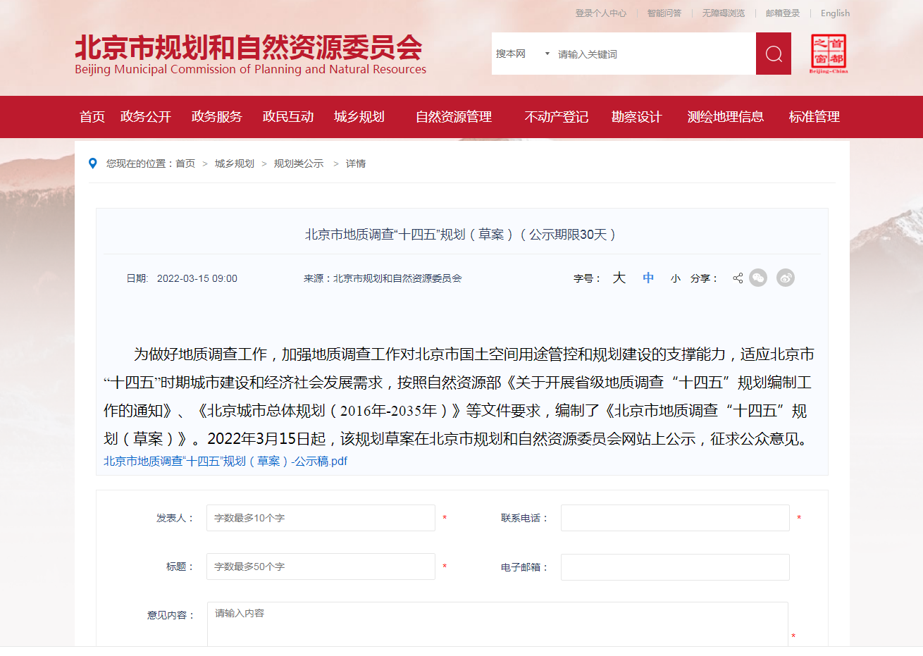 地大熱能地?zé)?多能互補(bǔ)網(wǎng)訊:《北京市地質(zhì)調(diào)查“十四五”規(guī)劃(2021—2025年)(草案)》(以下簡(jiǎn)稱《草案》)3月15日起在市規(guī)劃自然資源委網(wǎng)站公示,聽取公眾意見,公示期30天?!?a href="http://www.switchboardsports.com/t/規(guī)劃.html" >規(guī)劃》提出,北京市將率先對(duì)首都功能核心區(qū)地?zé)崮?/a>等開展綜合地質(zhì)調(diào)查評(píng)價(jià),提供地質(zhì)安全保障。社會(huì)公眾對(duì)該《規(guī)劃》如有意見建議,可在4月14日前登錄北京市規(guī)劃自然資源委網(wǎng)站留言。