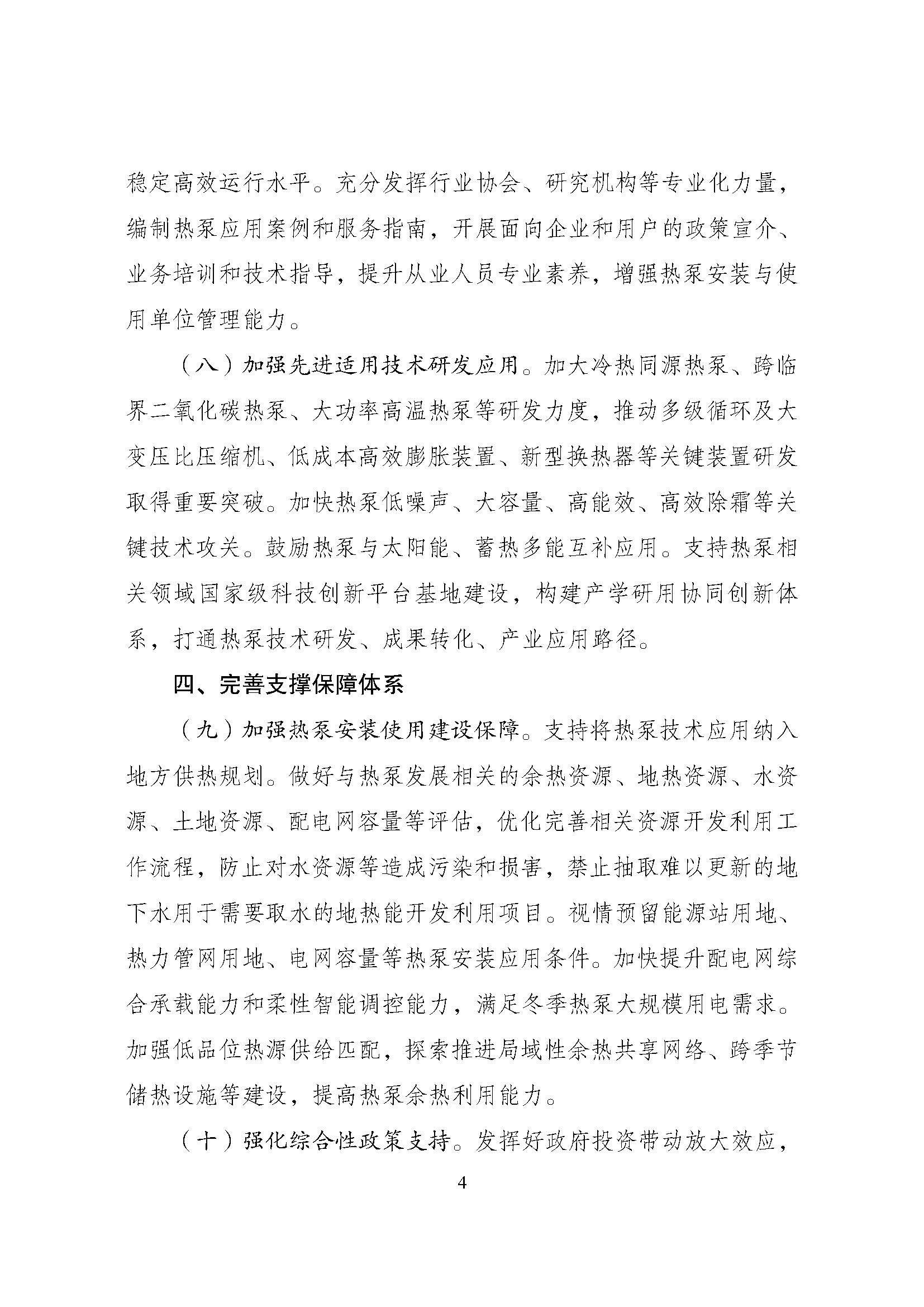 推動(dòng)熱泵行業(yè)高質(zhì)量發(fā)展,有助于推進(jìn)重點(diǎn)領(lǐng)域節(jié)能降碳,培育綠色低碳產(chǎn)業(yè)增長(zhǎng)點(diǎn),為積極穩(wěn)妥推進(jìn)碳達(dá)峰碳中和、加緊經(jīng)濟(jì)社會(huì)發(fā)展全面綠色轉(zhuǎn)型提供有力支撐。為全面貫徹黨的二十大和二十屆二中、三中全會(huì)精神,認(rèn)真落實(shí)黨中央、國(guó)務(wù)院決策部署,推動(dòng)熱泵行業(yè)高質(zhì)量發(fā)展,助力重點(diǎn)領(lǐng)域節(jié)能降碳,培育綠色低碳產(chǎn)業(yè)增長(zhǎng)點(diǎn),支撐經(jīng)濟(jì)社會(huì)發(fā)展全面綠色轉(zhuǎn)型,國(guó)家發(fā)展改革委、工業(yè)和信息化部、生態(tài)環(huán)境部、住房城鄉(xiāng)建設(shè)部、交通運(yùn)輸部、國(guó)家能源局等部門制定了《推動(dòng)熱泵行業(yè)高質(zhì)量發(fā)展行動(dòng)方案》。