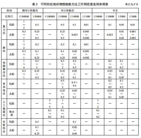 h) 地球物理方法實物工作量應滿足相應比例尺(參見表 3)及探測深度要求;后續(xù)涉及鉆探工作的應有異常驗證和再解釋的設計內容。