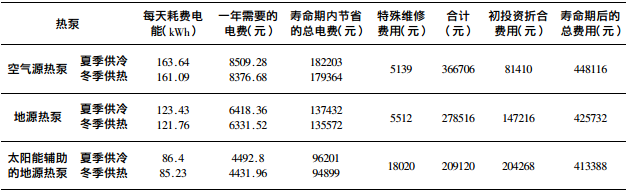 調(diào)查表明,在整個(gè)壽命期之內(nèi),一般使用者都會(huì)更換一次壓縮機(jī),按照研究的數(shù)據(jù),為了提高整個(gè)系統(tǒng)的效率,壓縮機(jī)大多在壽命期的第14年更換,使用更高效昂貴的壓縮機(jī)。地大熱能地源熱泵事業(yè)部專家認(rèn)為考慮到本文研究的熱泵系統(tǒng)冷量接近,認(rèn)為更換壓縮機(jī)對(duì)于費(fèi)用比較不產(chǎn)生影響。