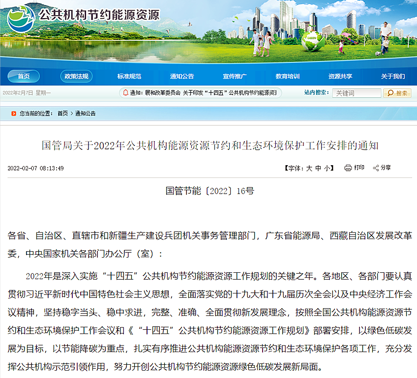 地大熱能清潔低碳能源網(wǎng)訊:國管局發(fā)布《關(guān)于2022年公共機構(gòu)能源資源節(jié)約和生態(tài)環(huán)境保護工作安排的通知》。通知指出,全面落實節(jié)能降碳有關(guān)工作: