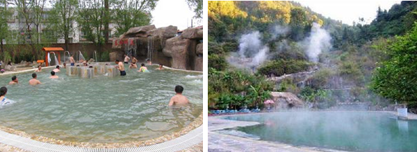 熱水溫泉地處老圖山脈東緣山麓,分布面積為0.42平公里,日最大可采儲量1800~2100噸,中心孔深503米,自流水溫高達當?shù)胤悬c97℃,是全國水溫最高的溫泉之一。泉水中含有碳酸氯鈉、硫化氫、二氧化硅、氡、氟、碘、硼、銅、銀、鉀、鈦、鈄、鎂、鋰、鈣等卜幾種化學物質及微量元素,對神經(jīng)衰弱、高血壓、糖尿病、皮膚病、胃病、布氏桿菌癇、多發(fā)性神經(jīng)炎、增生性脊柱炎、氣管炎等30多種常見疾病有很好的療效和較強的保健作用。