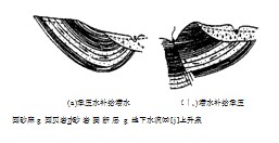 松散沉積物含水層之間的黏性土層,并不完全隔水,且具有微透水性。具有一定水頭 差的相鄰含水層,通過弱透水層發(fā)生的滲透,稱為越流。顯然,隔水層越薄,隔水性越差, 相鄰含水層之間的水頭差越大,則越流補給量越大。盡管單位面積上的越流量通常很小, 由于越流是在弱透水層分布的整個范圍內發(fā)生,總的補給量也是相當可觀的。