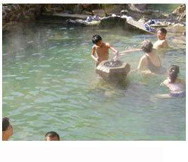 云南巴臘掌溫泉風(fēng)景巴臘掌距離云南龍陵縣城13千米,溫泉區(qū)位于香柏河?xùn)|西兩岸,共有大小泉池60多處。其中,有蒸氣沖天的大滾鍋,還有泉眼在河床上的水中浴盆。這里的溫泉不僅溫差較大,泉水的顏色也多不相同:有的清澈見底、有的白如乳漿、有的色似咖啡,這是它們含有不同的礦物質(zhì)所致,因此也就具有不同的醫(yī)療效果。 |
