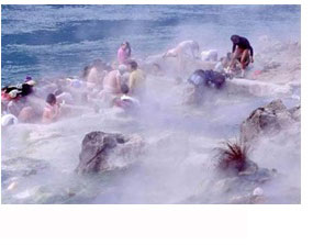 云南滴水河溫泉風景滴水河溫泉以泉群形式出露,出水點散布于滴水河河床及河漫灘上,地表為第四系礫石、砂等沖洪積物覆蓋,滴水河溫泉出露特征高程與躍進橋溫泉和瑪布河溫泉不同,其出露高程為1502.3m,相對較高。 |